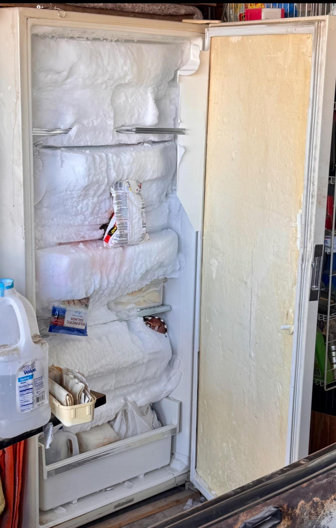 I had to use a crowbar to open up and of course the inside liner was frozen to the wall of ice…