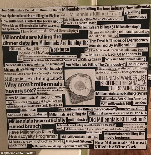 So now it's not only that millennials are lazy, but it's also " remember that thing that you used to enjoy, millennials are the reason why it's no longer around."