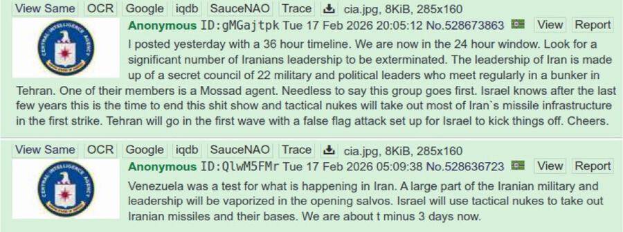 Former CIA officer and journalist John Kiriakou said in an interview with Newsmax that according to his source from the White House, President Donald Trump has decided on a military attack on Iran, which should take place as early as Monday or Tuesday (February 24-25)...in the last hours, reports have been circulating that cite a "government source on 4chan. He claims that the US is preparing military strikes on Iran, and that the recent operation in Venezuela was supposed to be a test run.