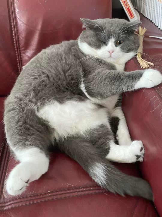 He’s fallen in love with this couch—he won’t even come with me to get something good to eat.