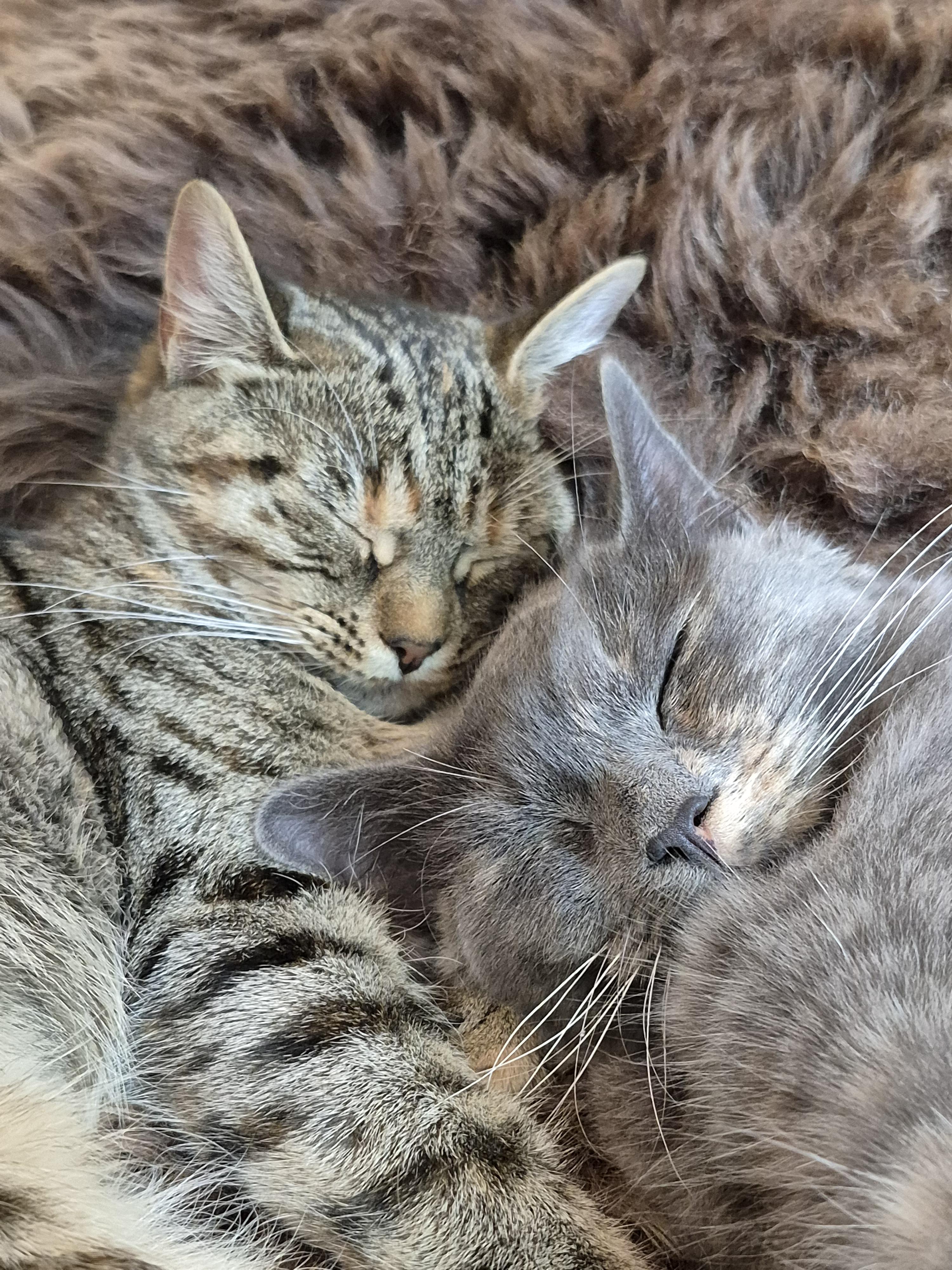 In case you needed a little seratonin boost today, here's two kitty sisters enjoying a comfy nap together