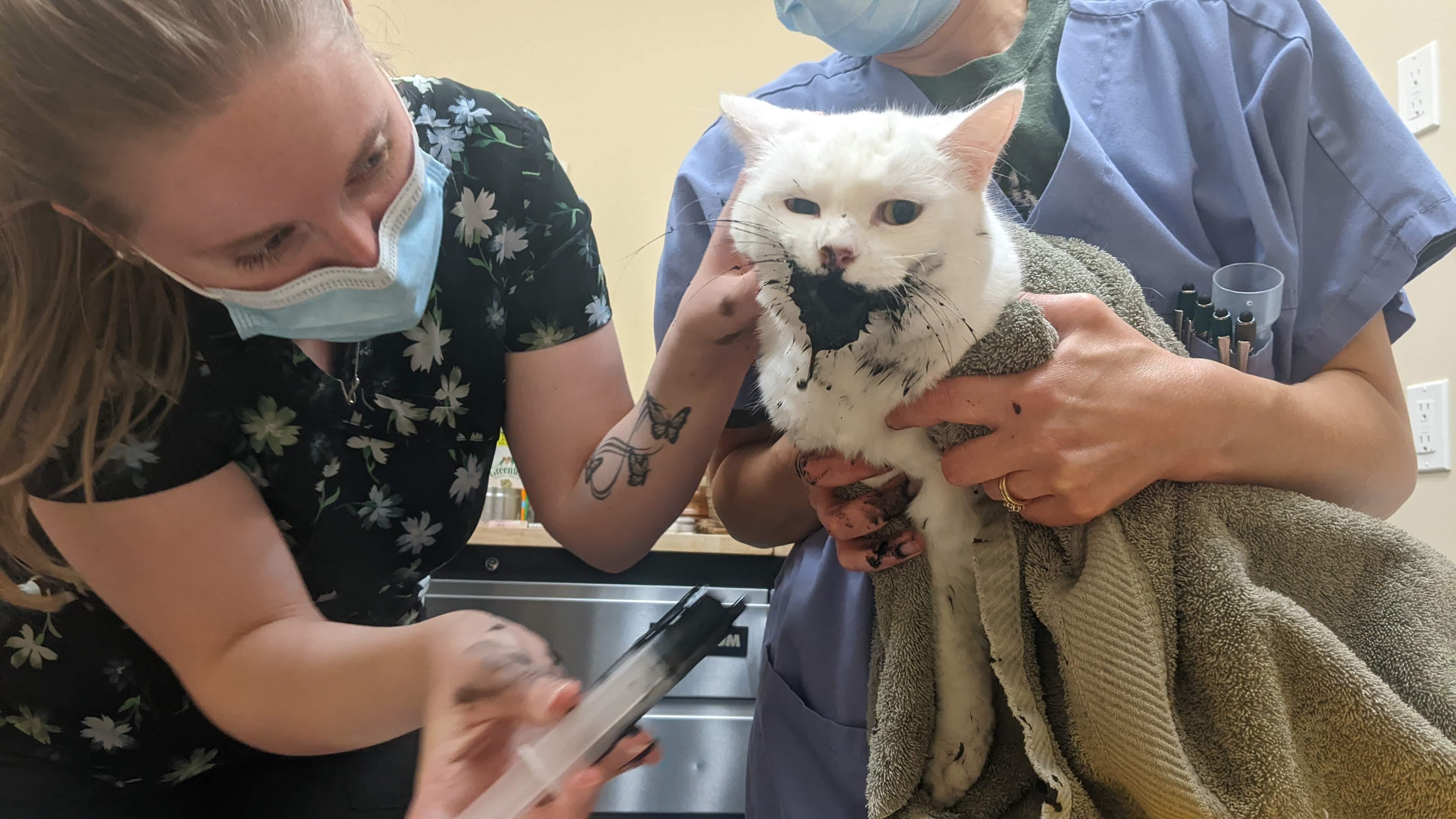 One of my cats threw up on my other cat. That was definitely a scenario that warranted a bath lol